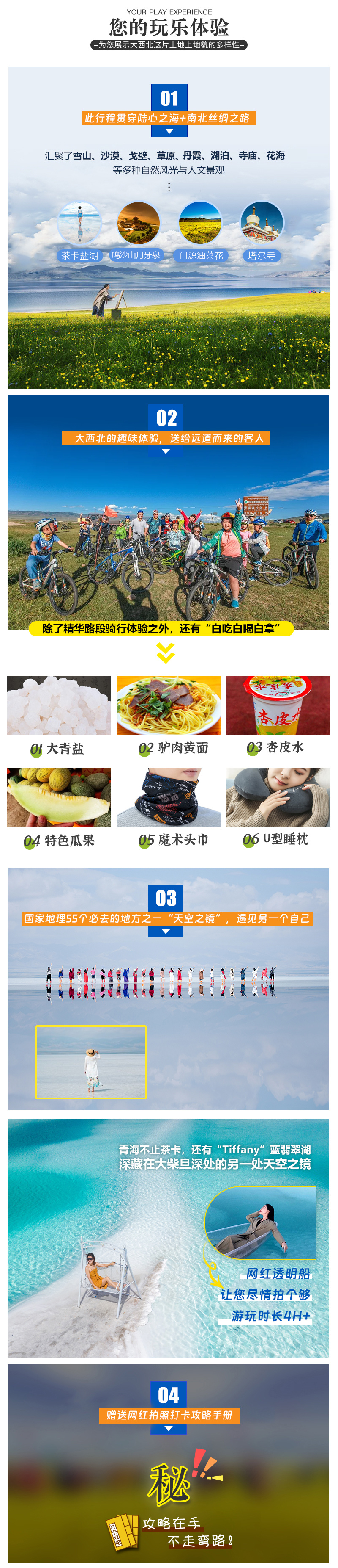 为了更好的感受青海湖,行程中赠送大家爽爆的【环湖骑行体验】。没有骑行基础,也不用担心,会有专业的骑行领队为大家讲解骑行技巧,途中也有后援车辆随时跟进,体力不支或不想继续骑行的,可以随时上车,跟车游览。