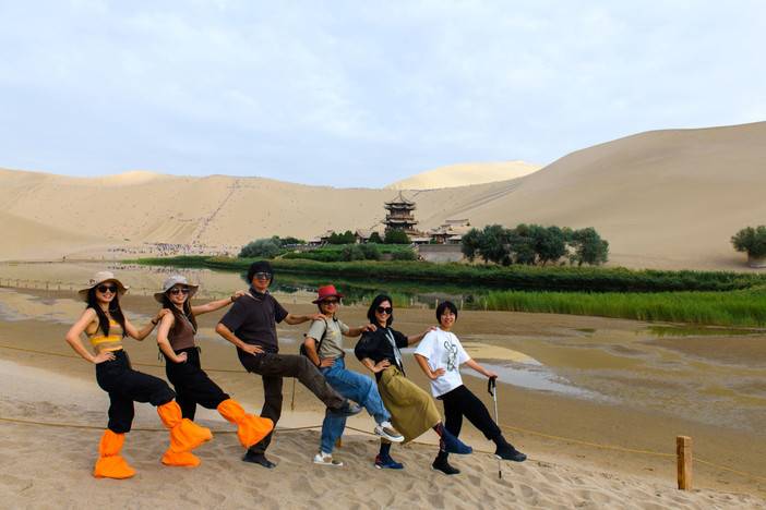 早餐过后,我们驱车翻越当金山前往敦煌,领队将带领大家去免费品尝有着“中华一绝”美誉的敦煌特色小吃:驴肉黄面。当鲜美滑嫩的驴肉卤汁遇见多筋弹性十足的黄面,补血益气,满口溢香。餐后,驱车前往不一样的西北盛景【鸣沙山月牙泉】。鸣沙山和月牙泉是大漠戈壁中的一对孪生姐妹,“山以灵而故鸣,水以神而益秀”。无论从山顶鸟瞰,还是泉边畅游,都会心驰神往。沙漠中您可以自由选择骑骆驼、沙漠越野、或者直接步行上沙山。抢占一个绝佳的位置,静候夕阳西下。落日斜晖为细沙镀上了一层薄薄的金色,随手拍下一张剪影,温柔了整个大漠。