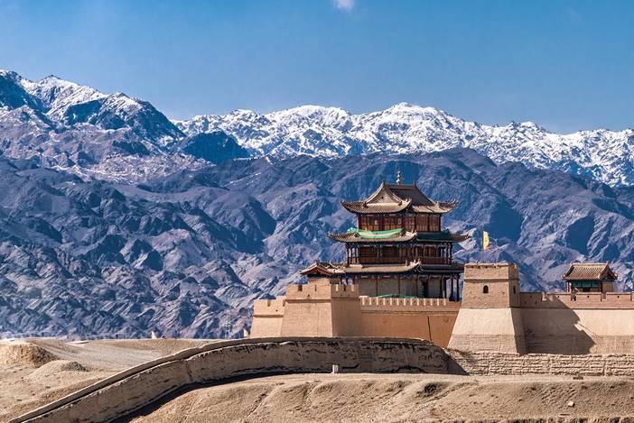 从关外看去,巍峨雄壮的【嘉峪关】【费用自理】关城及瓮城伫立在湛蓝的天空之下,一派庄严。几百年前的大青石,依旧在这里默默地承载着历史的厚重。远处是延绵的祁连山脉,山顶积雪依稀可见,天空灿烂的云霞将嘉峪关关城衬托的更加壮美,不仅如此,嘉峪关景区经过这几年的重建与开发,关外还配备了一些娱乐设施供大家游玩。