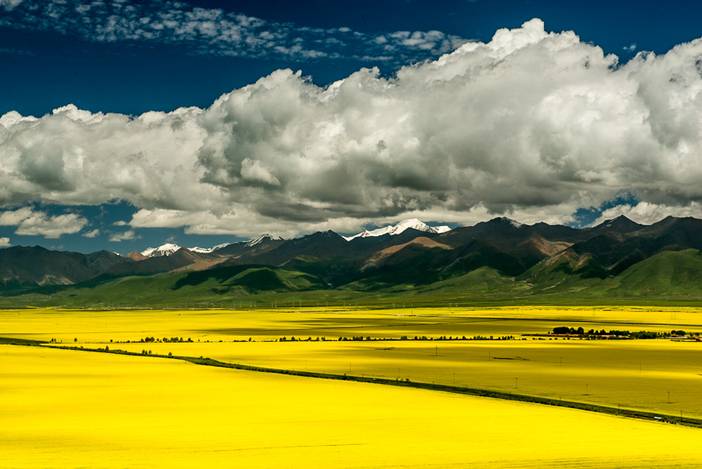 在祁连山与达坂山之间,有我们中国最大的北方小油菜种植基地。时值夏日,油菜花开,大片大片的金黄色在阳光之下显得格外耀眼,这便是【门源百里油菜花海】。它是风景迷人的金黄大地,更是游客心中的人间天堂。
