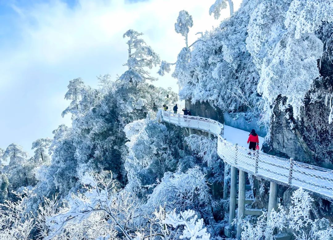 被雾凇装扮后的莽山五指峰配得上所有美好词汇