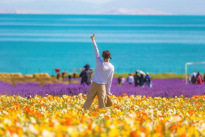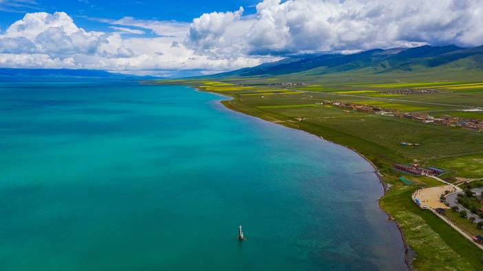 据说西王母居住的地方被称为“瑶池”,而青海湖就是她最大的“瑶池”。远看,青海湖在阳光下泛起涟漪,碧蓝色的湖水之上,是蔚蓝色的天空和慵懒漂浮的白云,仿佛给万物都蒙上了一层独有的清澈滤镜。环湖公路上牛羊散漫,带来城市中难得一见的“世俗气”。此时你不禁赞叹:高原上的湖泊竟然比大海更要生机勃勃,令人流连忘返。