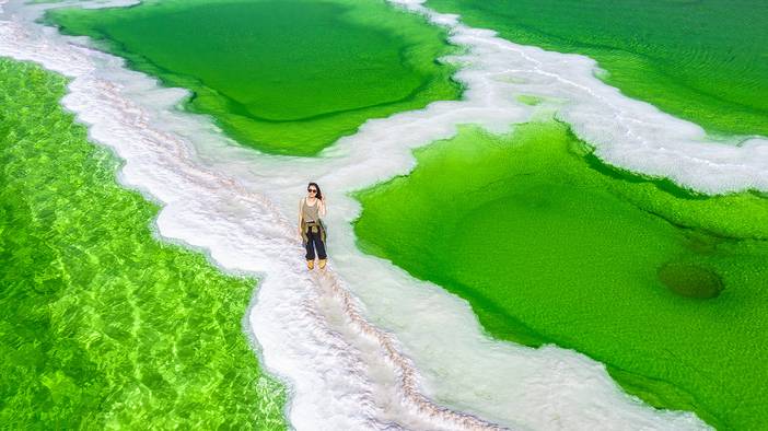 稍后我们来到绝美水域圣地—【水上雅丹】,经过亿万年的风侵雨蚀,在一望无际的清澈湖水之上形成了一个个高耸的土丘,从远处望去,它们就像一支扫巡塞外的舰队,这便是地球上唯一一处水上雅丹,它魔幻而神秘,壮观又磅礴!