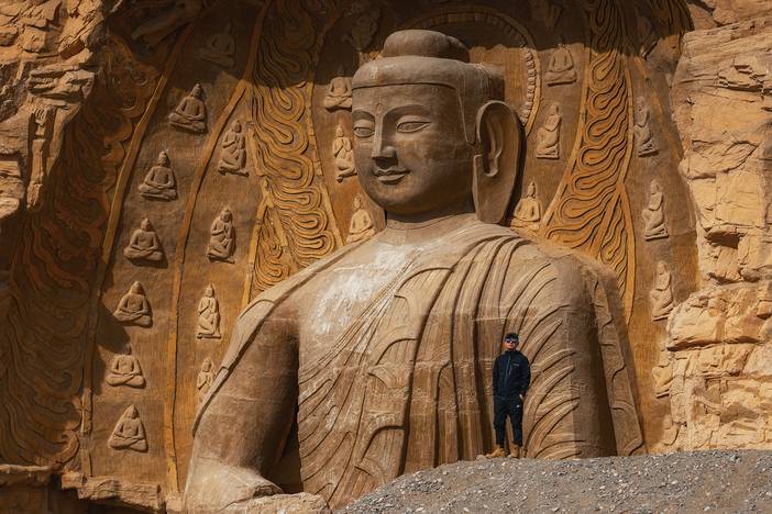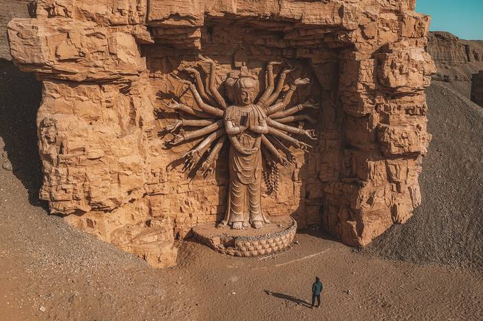 没拍尽兴不要紧,稍后我们将来到【丝路遗产城】。这里最近火到一塌糊涂,是连本地人都会去打卡的摄影圣地。仿唐宋建筑、千手观音、弥勒卧佛、希腊神庙等应有尽有,很多小仙女在这里拍飞天、神庙逃亡、废土风、民族风,不愁拍不出电影海报质感。