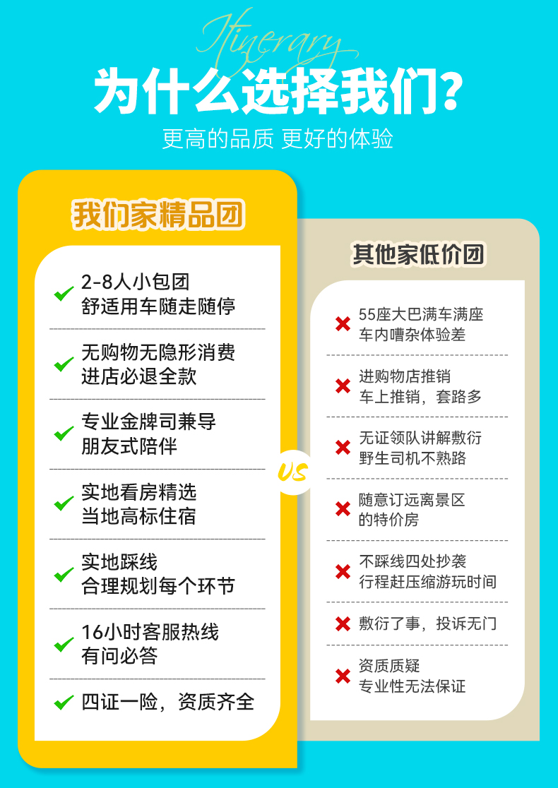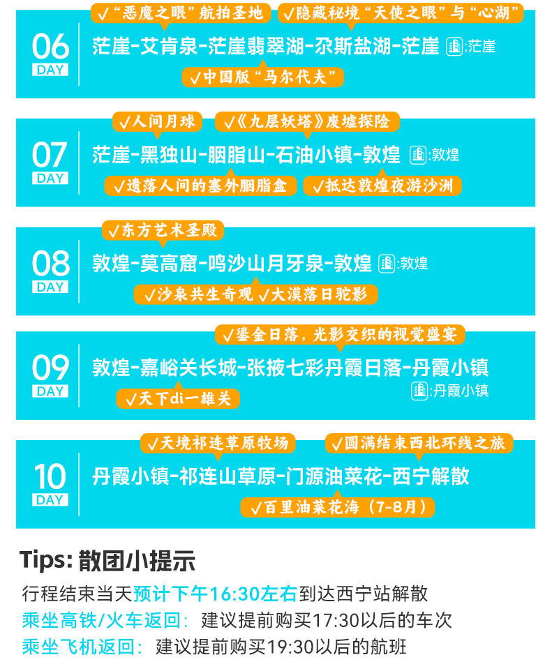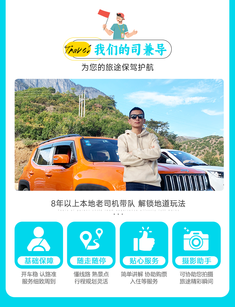 4、行程时间为计划安排,如遇天气、路况等特殊情况,领队将合理调整以确保行程顺利。
