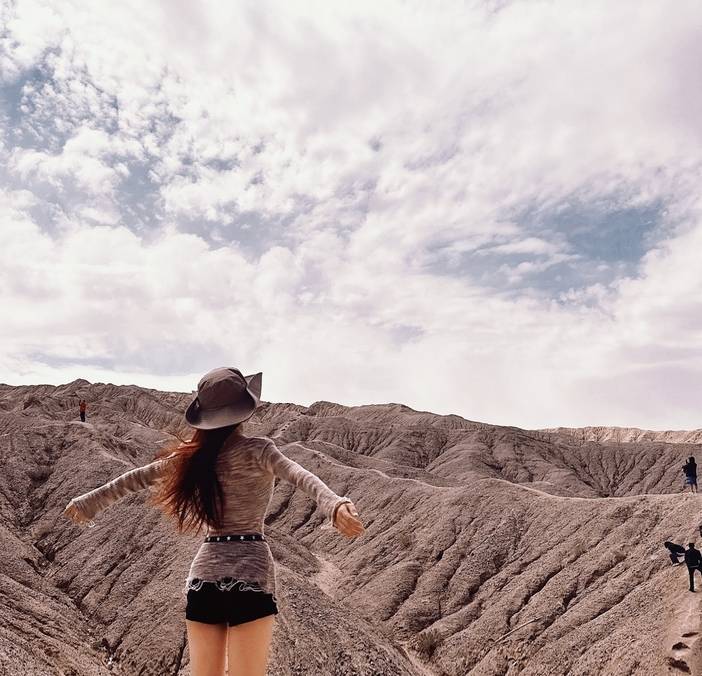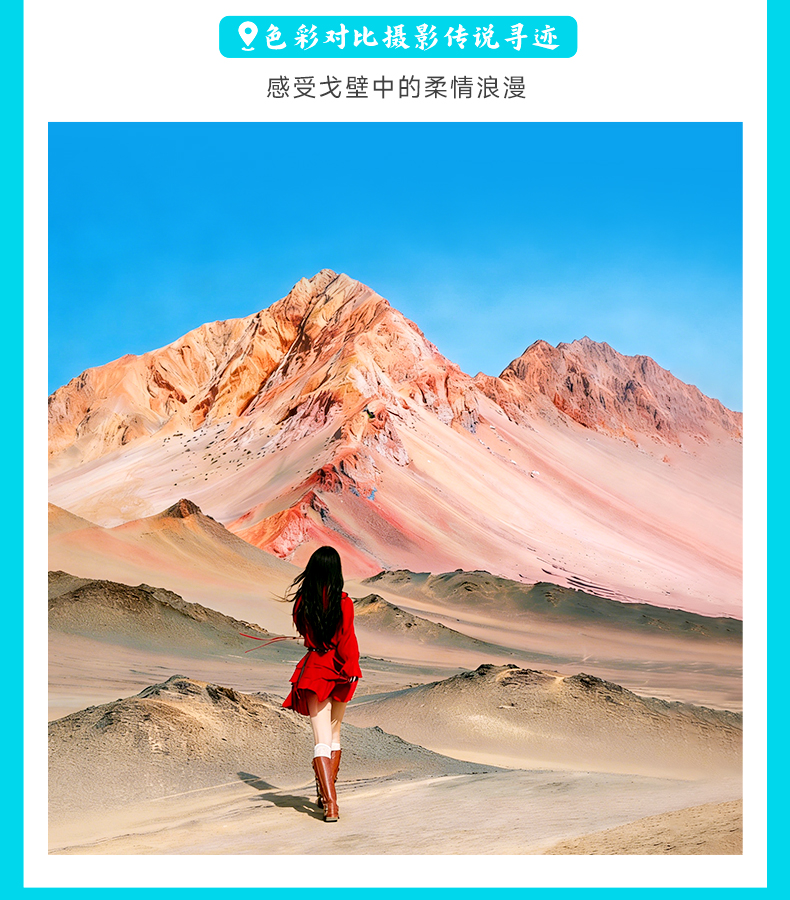 随后,探访【胭脂山】(游玩约1.5小时)这里绯红山体宛若胭脂洒落人间,相传是古商队休憩驿站。登临观景台,可遥想当年驼铃往来的盛景。山色随光影流转,从晨间柔粉至暮时紫红,每一刻都是独特的视觉盛宴。我们特别安排了充足的拍摄时间,大家可以在这里创作属于自己的"丝路大片"。