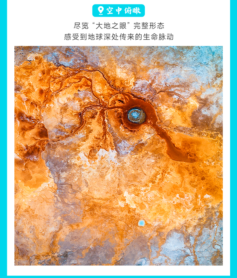 早餐后,前往被誉为“大地之眼”的【艾肯泉】(约35公里,1小时车程,游玩约1.5小时),泉眼终年翻涌不息,周围因硫磺矿物质长期沉淀形成红褐色轮廓,从空中俯瞰宛如一只凝视苍穹的瞳孔,震撼无比。我们特别安排无人机航拍体验,助你捕捉这一地质奇观的全貌,也可以在观景台上用望远镜近距离观察泉眼沸腾的细节,感受地球脉搏的跳动。
