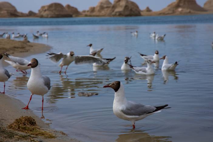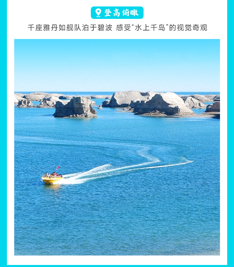 酒店早餐后,沿315国道西行前往乌素特【水上雅丹】(约270公里, 4.5小时车程,游玩约2-3小时)。这里是国内仅有的水上雅丹地貌群,被誉为“荒漠千岛湖”。千百座风蚀土丘散落在湛蓝湖水中,形如整装待发的远航舰队,气势恢宏。登高远眺,湖水环绕雅丹,光影交错间随手一拍皆是视觉大片。
