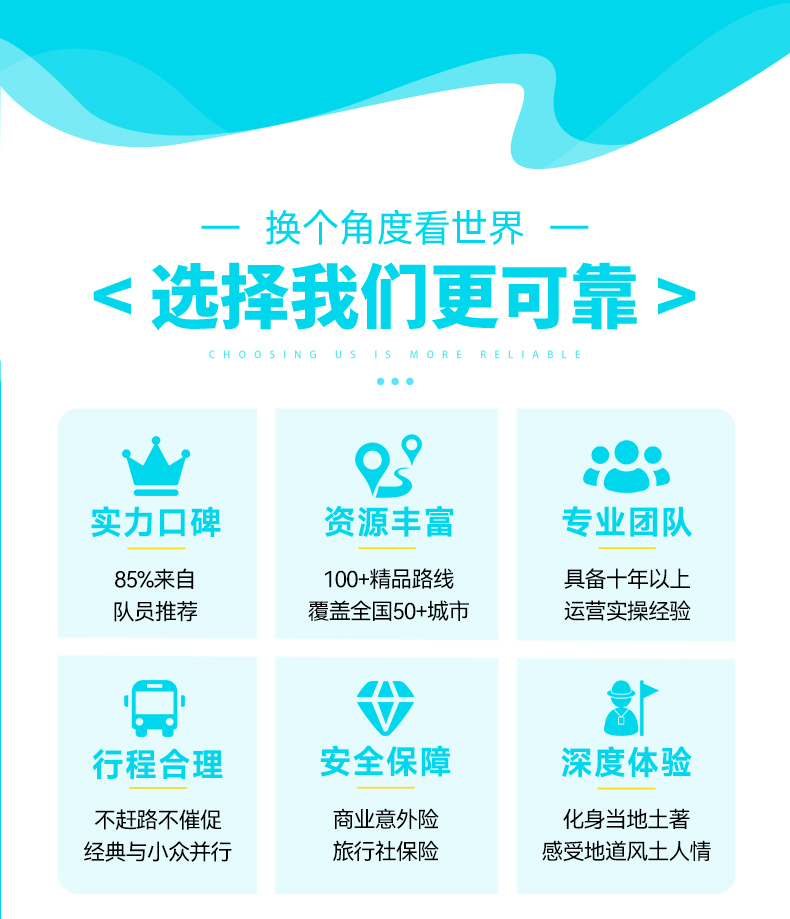 专业组织户外旅行、轻摄影旅行、社交旅行、深度旅行。