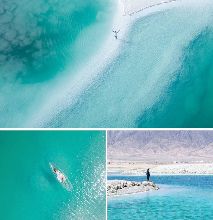 2、盐湖区域存在盐洞与卤水坑,请沿景区指定路线行走,注意脚下安全;