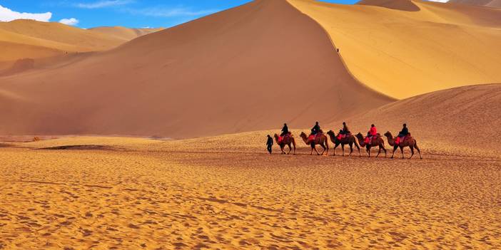 5、如您在鸣沙山自费参加骑骆驼活动,请谨遵工作人员的指导。骆驼虽然性情温顺,但因其体形高大,所以当骑上驼背后,全程要抓紧骆驼鞍上的把手,特别注意在上下骆驼的时候。
