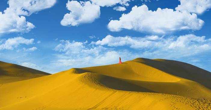 在这里,可以攀登沙山,感受流沙在脚下流动的独特触感;或漫步泉边,欣赏汉唐风格的月泉阁倒映在澄澈水中的如画景致。当夕阳西下,整个沙漠被染成金红色,可以骑乘骆驼,伴着悠扬的驼铃声穿越沙海,体验古丝路商队的远征情怀。作为与莫高窟齐名的敦煌文化双璧,鸣沙山月牙泉以其跨越两千年的自然奇观,持续演绎着人与自然的美好对话。
