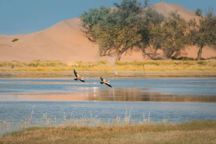 早餐后整理行装,于酒店集合出发,乘车前往阿拉善左旗腾格里沙漠,车程约2.5小时,正式开启本次沙漠徒步之旅。