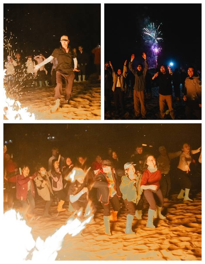 根据天黑下来的时间确定篝火晚会+高空烟花的时间,一次沙漠腹地的篝火晚会一定是你一生最美好的回忆之一。