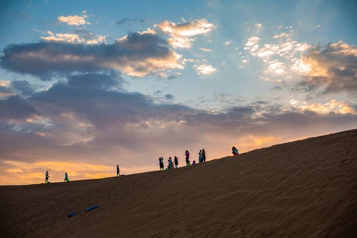7:00起床,早餐后收拾完营地,翻越大沙山,今日领队选择合适的滑沙地点进行滑沙;